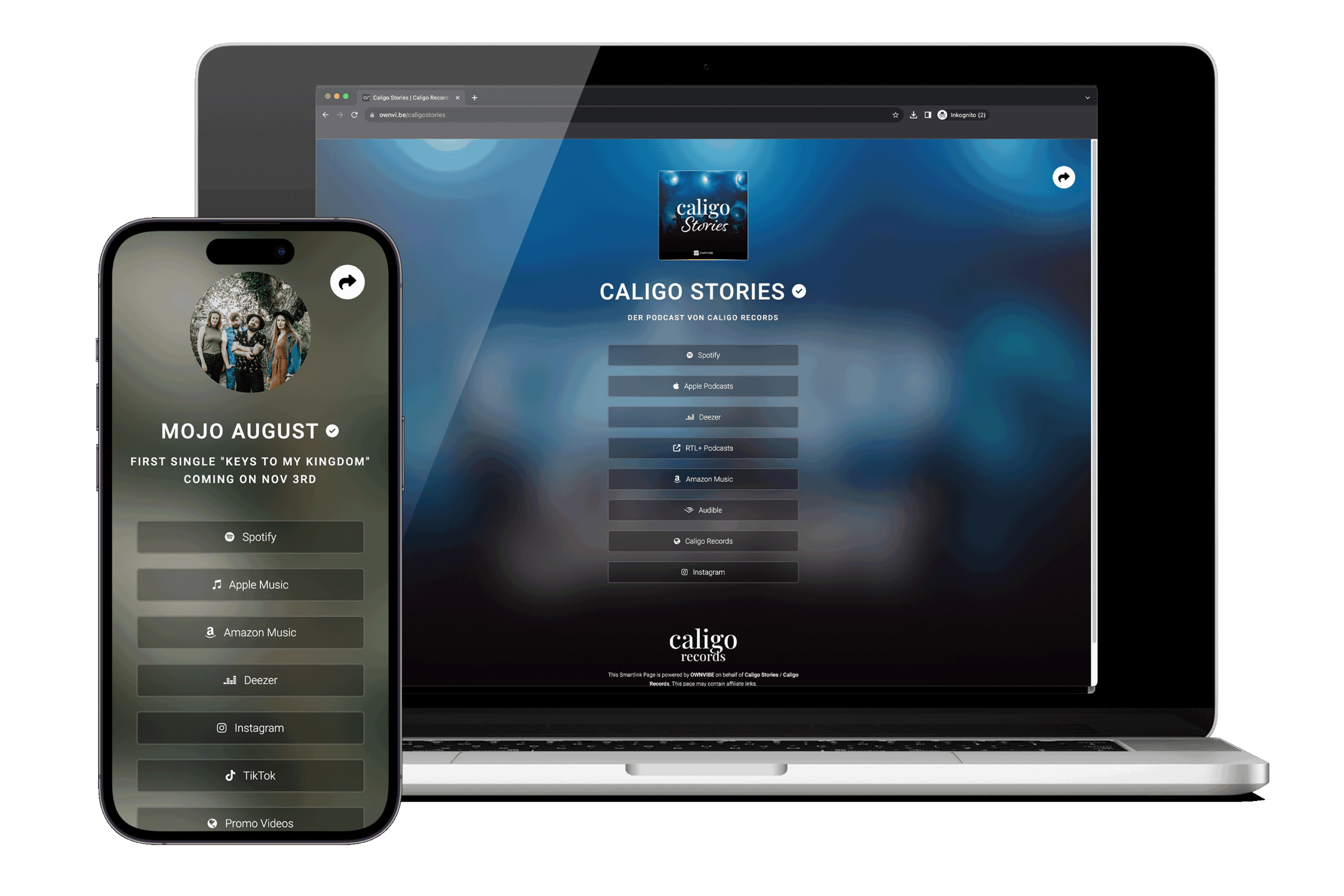 OWNVIBE Smartlink Pages is a owned and operated web service that allows orginals, content partners and labels by OWNVIBE to reach their entire audience with a single link.
